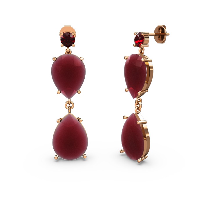 Garnet ve kök yakut 18 ayar rose altın küpe