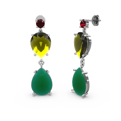 Garnet, kök zümrüt ve peridot 14 ayar beyaz altın küpe