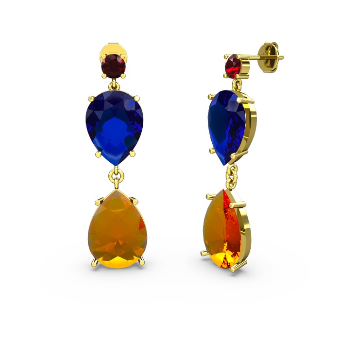 Garnet, sitrin ve lab safir 14 ayar altın küpe