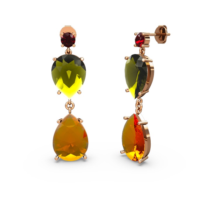 Garnet, sitrin ve peridot 14 ayar rose altın küpe
