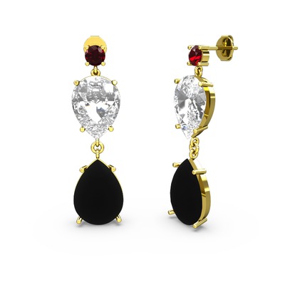 Garnet, siyah zirkon ve beyaz zirkon 14 ayar altın küpe