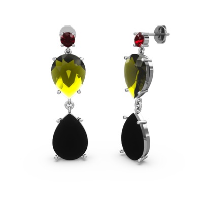 Garnet, siyah zirkon ve peridot 14 ayar beyaz altın küpe