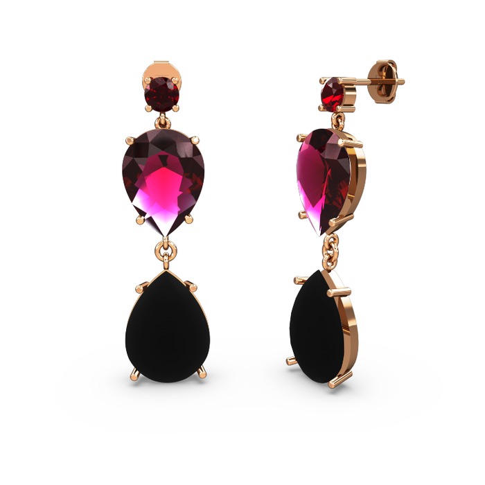 Garnet, siyah zirkon ve rodolit garnet 18 ayar rose altın küpe