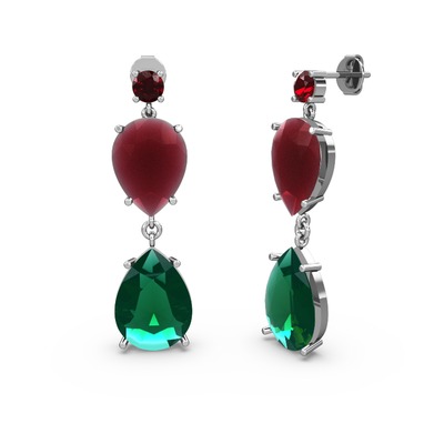 Garnet, yeşil kuvars ve kök yakut 925 ayar gümüş küpe