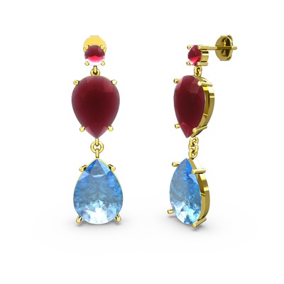 Kök yakut ve akuamarin 14 ayar altın küpe