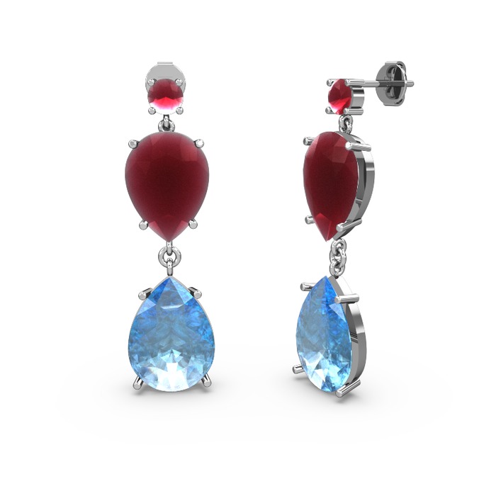 Kök yakut ve akuamarin 14 ayar beyaz altın küpe