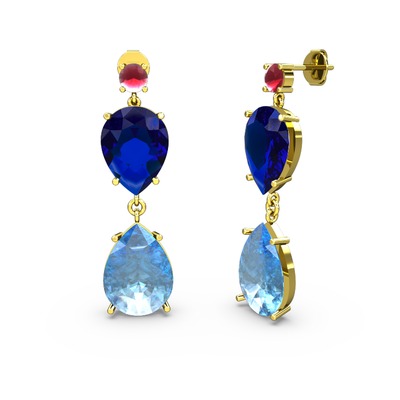 Kök yakut, akuamarin ve lab safir 14 ayar altın küpe