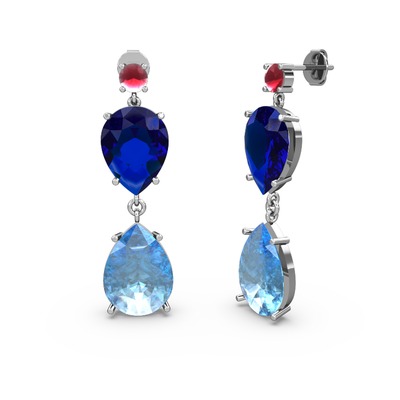 Kök yakut, akuamarin ve lab safir 14 ayar beyaz altın küpe