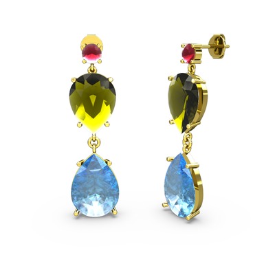 Kök yakut, akuamarin ve peridot 925 ayar altın kaplama gümüş küpe