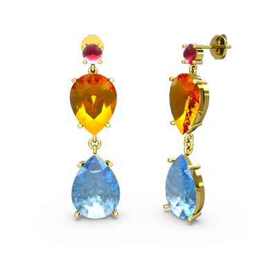 Kök yakut, akuamarin ve sitrin 925 ayar altın kaplama gümüş küpe
