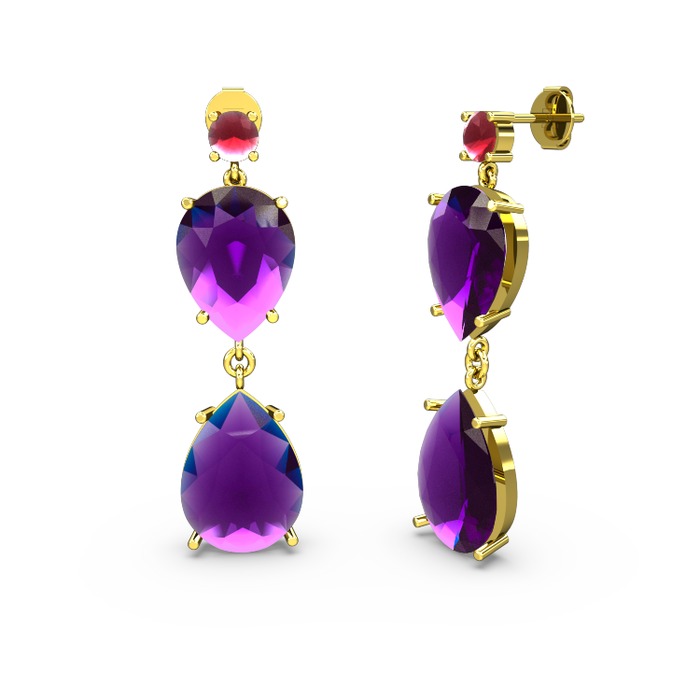 Kök yakut ve ametist 925 ayar altın kaplama gümüş küpe