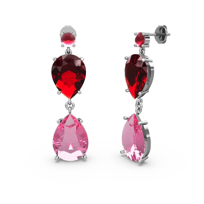 Kök yakut, pembe kuvars ve garnet 14 ayar beyaz altın küpe