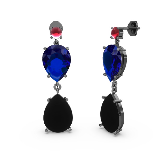 Kök yakut, siyah zirkon ve lab safir 925 ayar siyah rodyum kaplama gümüş küpe