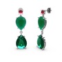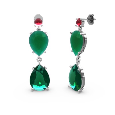 Kök yakut, yeşil kuvars ve kök zümrüt 8 ayar beyaz altın küpe