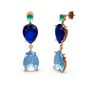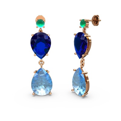 Kök zümrüt, akuamarin ve lab safir 18 ayar rose altın küpe