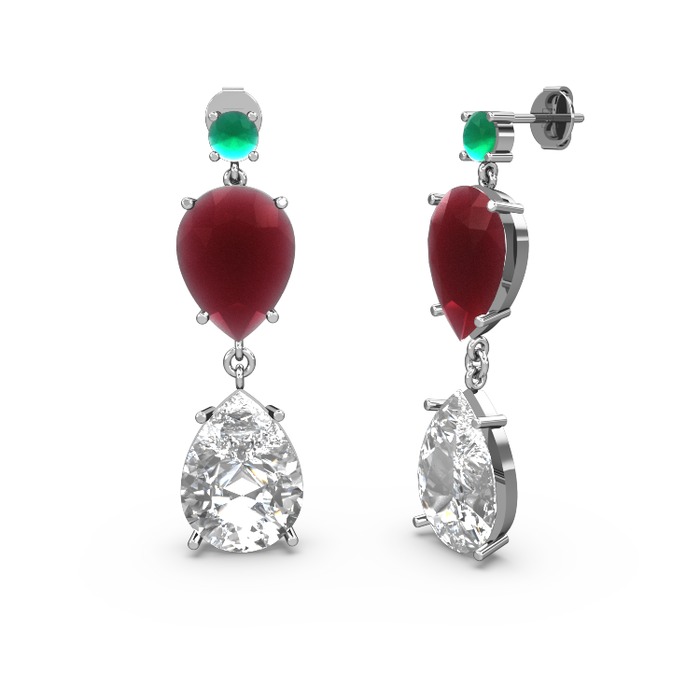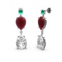 Kök zümrüt, beyaz zirkon ve kök yakut 14 ayar beyaz altın küpe