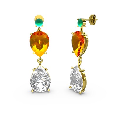 Kök zümrüt, beyaz zirkon ve sitrin 925 ayar altın kaplama gümüş küpe