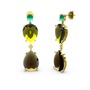Kök zümrüt, dumanlı kuvars ve peridot 14 ayar altın küpe