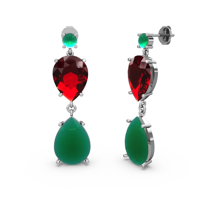 Kök zümrüt ve garnet 8 ayar beyaz altın küpe