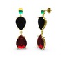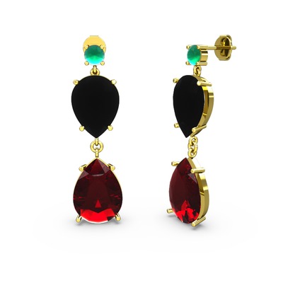 Kök zümrüt, garnet ve siyah zirkon 18 ayar altın küpe