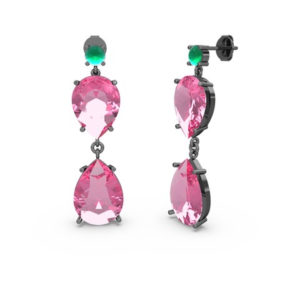 Kök zümrüt ve pembe kuvars 925 ayar siyah rodyum kaplama gümüş küpe
