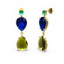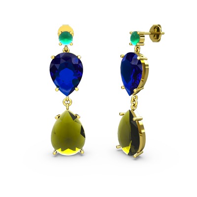 Kök zümrüt, peridot ve lab safir 14 ayar altın küpe