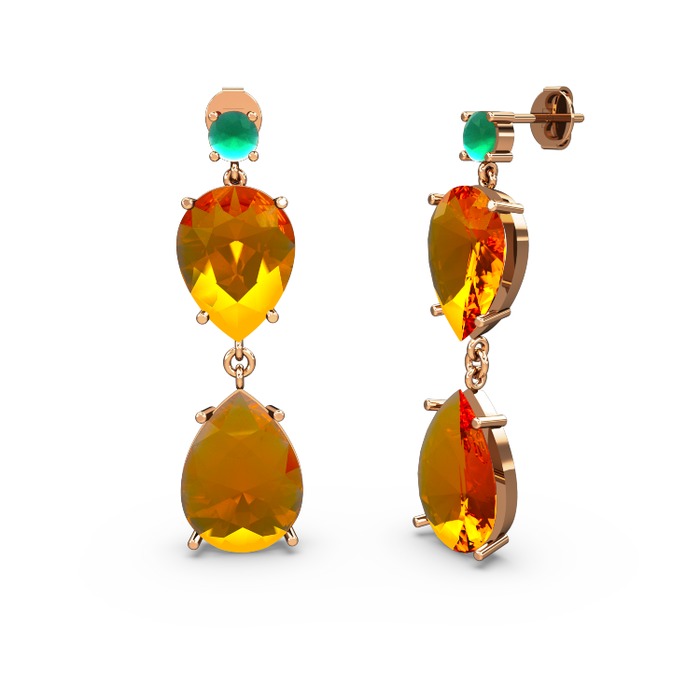 Kök zümrüt ve sitrin 18 ayar rose altın küpe