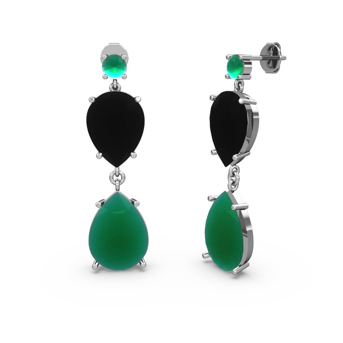 Kök zümrüt ve siyah zirkon 8 ayar beyaz altın küpe