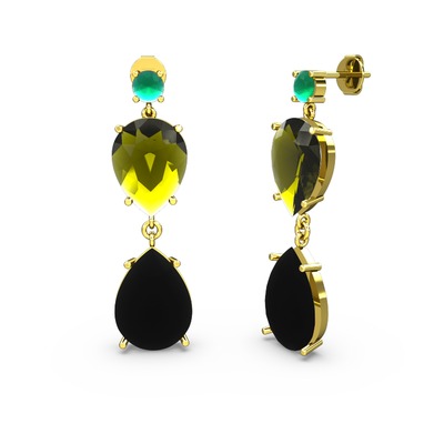Kök zümrüt, siyah zirkon ve peridot 18 ayar altın küpe