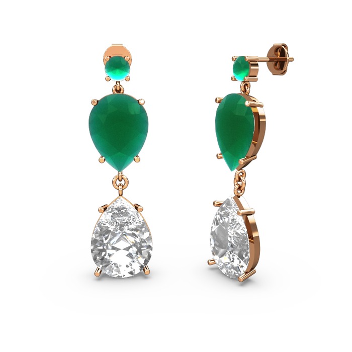 Kök zümrüt ve swarovski 18 ayar rose altın küpe