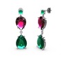 Kök zümrüt, yeşil kuvars ve rodolit garnet 14 ayar beyaz altın küpe