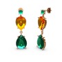 Kök zümrüt, yeşil kuvars ve sitrin 14 ayar rose altın küpe