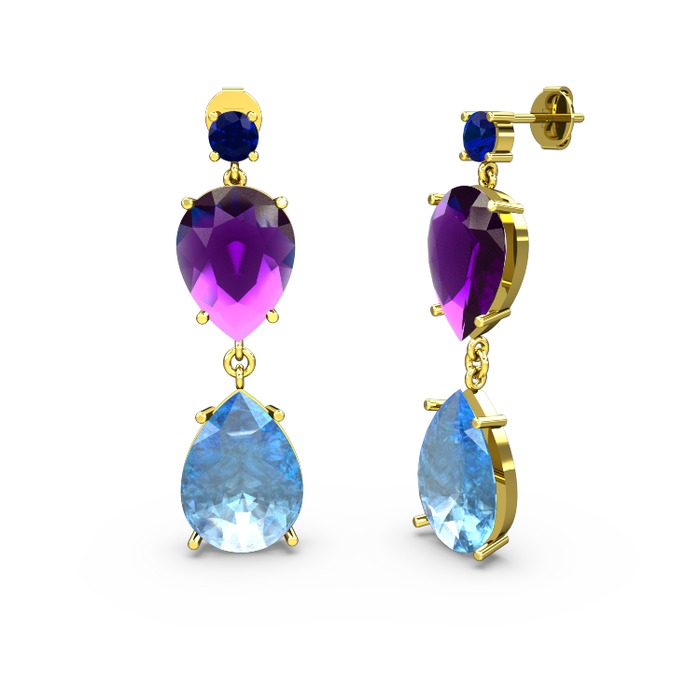 Lab safir, akuamarin ve ametist 8 ayar altın küpe
