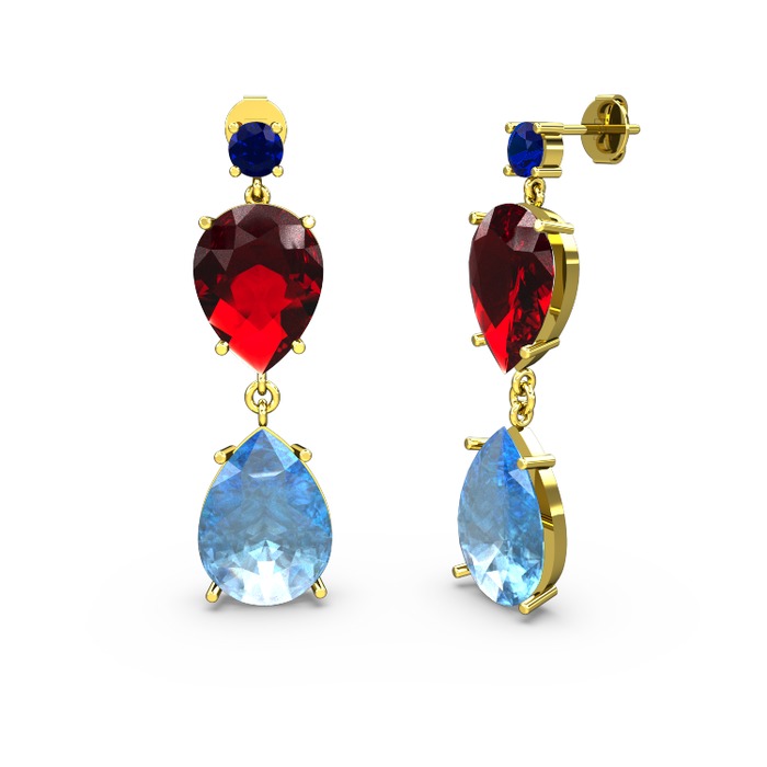 Lab safir, akuamarin ve garnet 8 ayar altın küpe