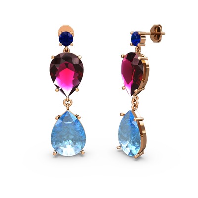 Lab safir, akuamarin ve rodolit garnet 8 ayar rose altın küpe