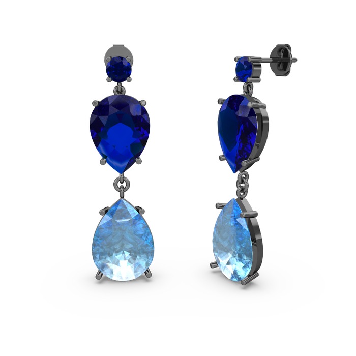 Lab safir ve akuamarin 925 ayar siyah rodyum kaplama gümüş küpe
