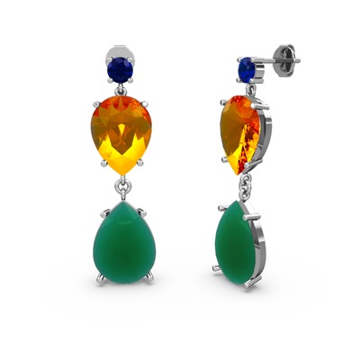 Lab safir, kök zümrüt ve sitrin 18 ayar beyaz altın küpe