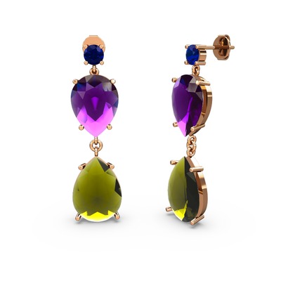Lab safir, peridot ve ametist 18 ayar rose altın küpe