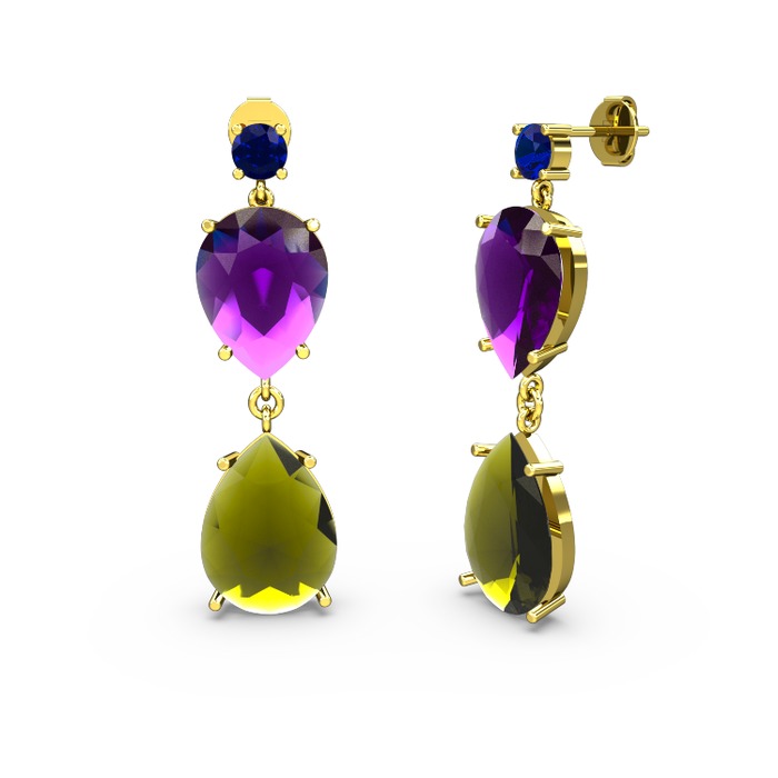 Lab safir, peridot ve ametist 925 ayar altın kaplama gümüş küpe