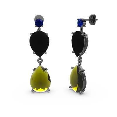 Lab safir, peridot ve siyah zirkon 925 ayar siyah rodyum kaplama gümüş küpe