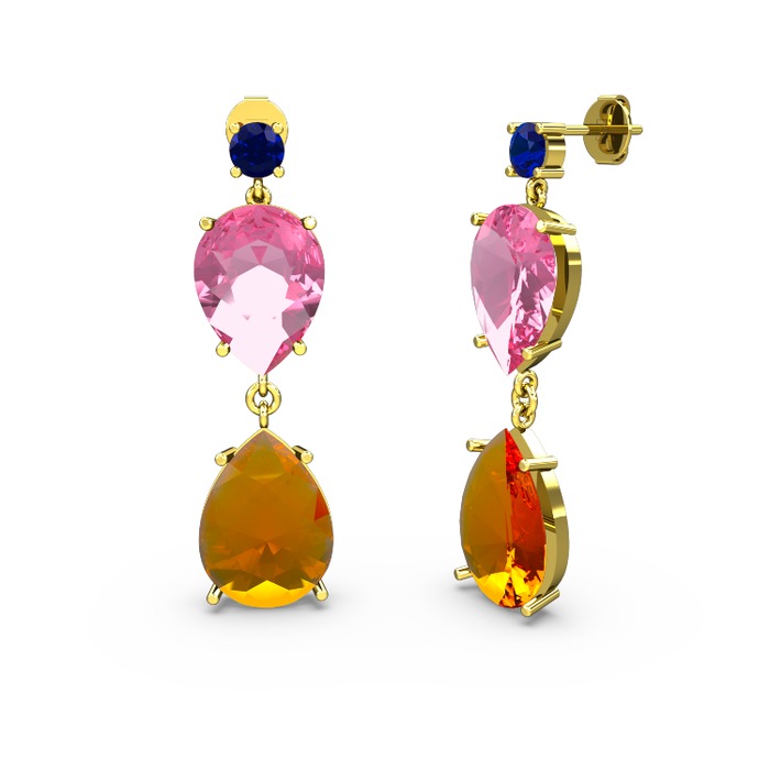 Lab safir, sitrin ve pembe kuvars 925 ayar altın kaplama gümüş küpe