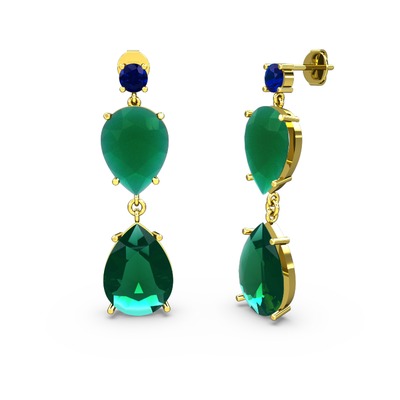 Lab safir, yeşil kuvars ve kök zümrüt 8 ayar altın küpe