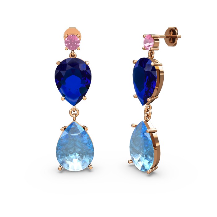 Pembe kuvars, akuamarin ve lab safir 14 ayar rose altın küpe
