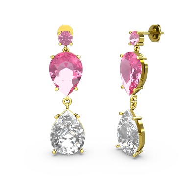 Pembe kuvars ve beyaz zirkon 8 ayar altın küpe
