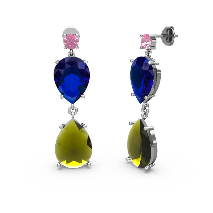 Pembe kuvars, peridot ve lab safir 8 ayar beyaz altın küpe
