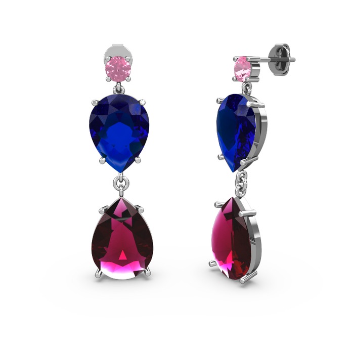 Pembe kuvars, rodolit garnet ve lab safir 925 ayar gümüş küpe