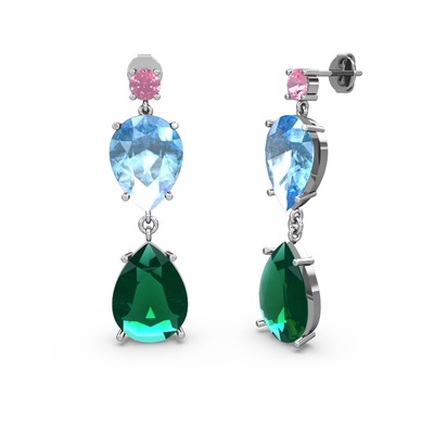 Pembe kuvars, yeşil kuvars ve akuamarin 925 ayar gümüş küpe