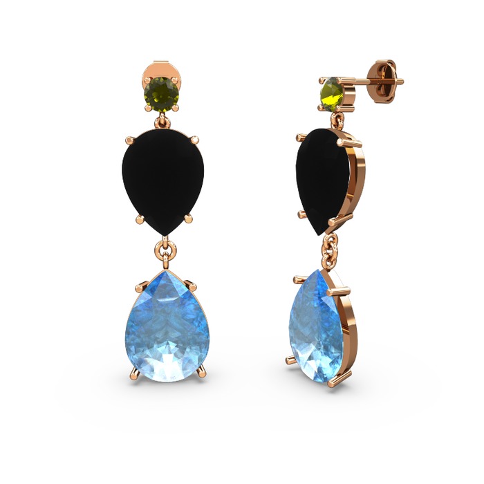 Peridot, akuamarin ve siyah zirkon 14 ayar rose altın küpe
