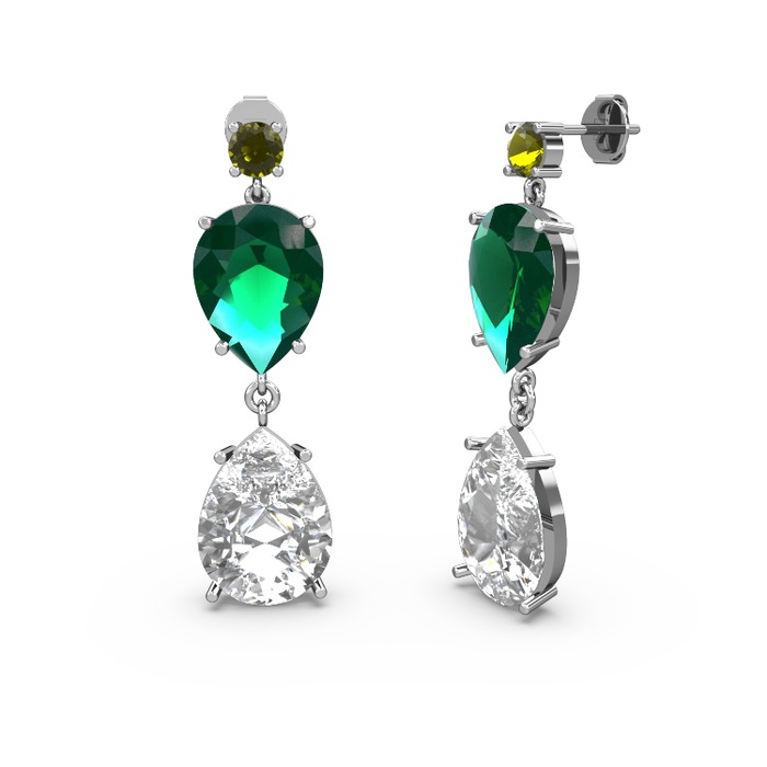 Peridot, beyaz zirkon ve yeşil kuvars 925 ayar gümüş küpe