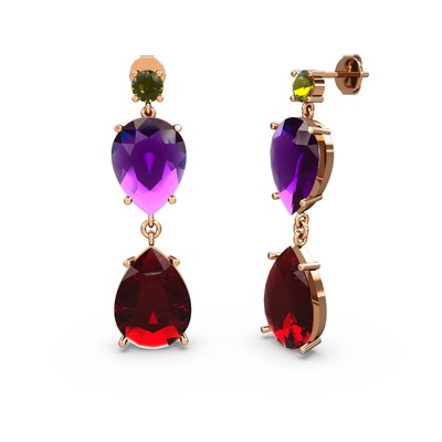 Peridot, garnet ve ametist 925 ayar rose altın kaplama gümüş küpe